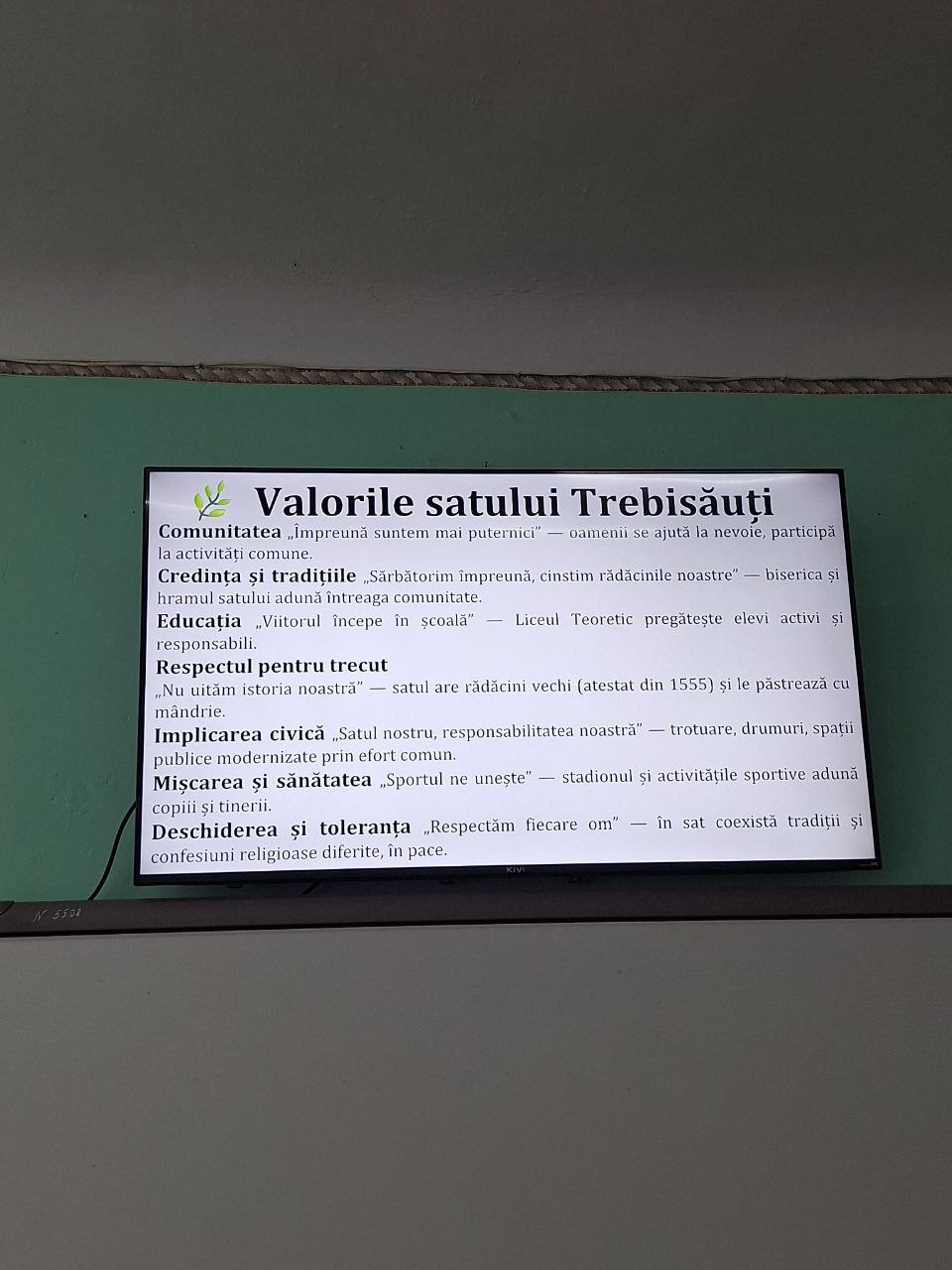 Libertatea, pacea, demnitatea, integritatea, hărnicia, curajul, camaraderia, sunt câteva dintre valorile centrale caracteristice poporului nostru, promovate în cadrul Decadei educației pentru valorile naționale cu genericul: ”TOȚI SUNTEM MOLDOVA”..
